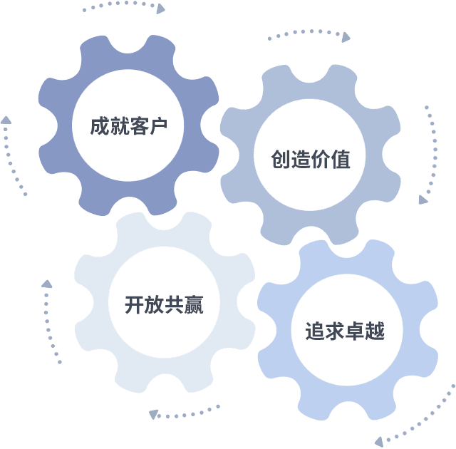 成就客户是一切决策的出发点,,,,创造价值是衡量所有工作的标准,,,追求卓越是完美真人做事做人的态度,,,,开放共赢是完美真人的格局也是最终的结果。。。。价值观的齿轮环环相扣,,推动着组织里的每个人不断向前。。